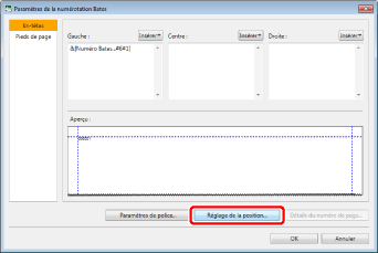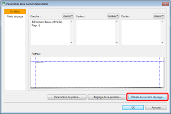 Pour rétablir la position standard du nombre de Bates, cliquez sur [Rétablir les paramètres par défaut].