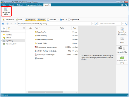 Si un grand nombre de documents sont enregistrés dans une Bibliothèque réseau (base de données), le fonctionnement de Desktop peut devenir instable du fait de l'augmentation du nombre de miniatures dans la base de données. Dans ce cas, décocher la case [Enregistrer temporairement les miniatures dans la base de données] pour désactiver l'enregistrement temporaire.