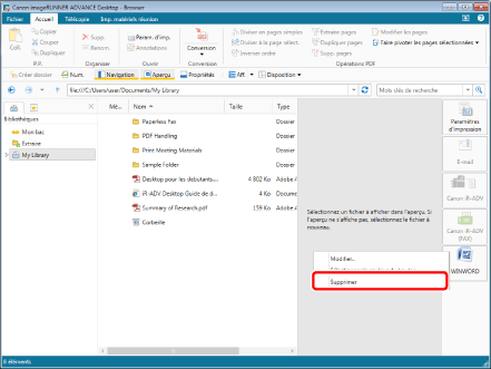 Ou sélectionner le menu [Fichier] > [Paramètres de la barre de sortie] > (nom de l'application) > [Supprimer].