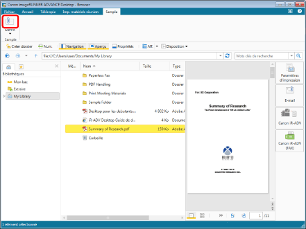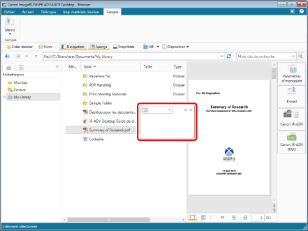 Sélectionnez un document et cliquez sur [Mémo] dans le ruban