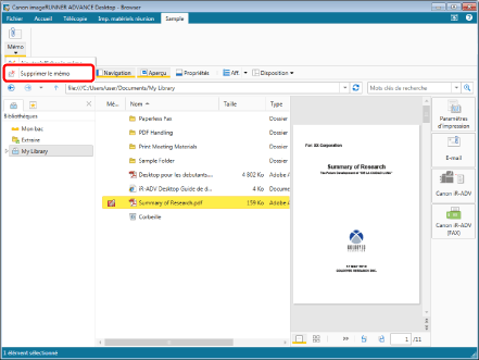 Cliquez avec le bouton droit de la souris, et sélectionnez [Supprimer le mémo].