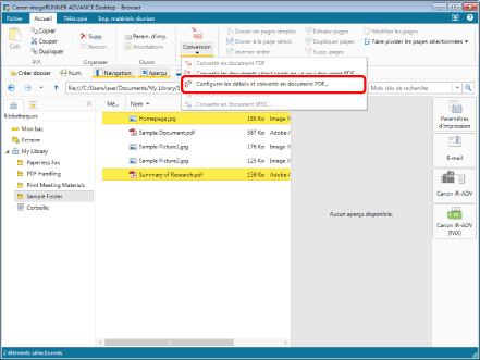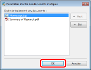 Si plusieurs documents sont sélectionnés : l'extension du nom du premier document devient ".pdf". Si le premier document est un PDF, "(2)" est ajouté à la fin du nom du document original.