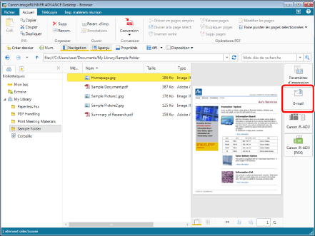 Il est possible de convertir plusieurs documents en documents PDF et de les envoyer par courrier électronique. Dans ce cas, chaque document est converti individuellement sans les fusionner dans un document PDF unique.
