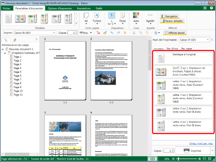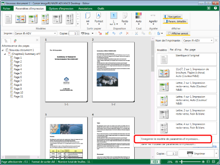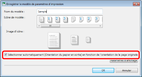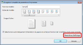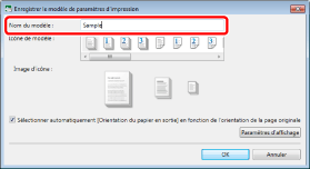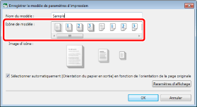 Le nombre de modèles enregistrés peut être vérifié dans la fenêtre [Gérer les modèles de paramètres d'impression]. Pour plus d'informations sur [Gérer les modèles de paramètres d'impression], consulter la section suivante. |