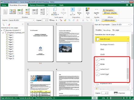 Pour être en mesure d'imprimer un document après avoir combiné plusieurs formats de papier, il est nécessaire de sélectionner une imprimante qui prend en charge cette fonction.