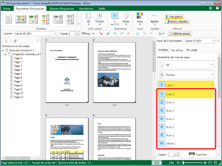 Si [Auto (Format)] est sélectionné dans les paramètres de format du papier en sortie, la mise en page est définie sur [1 sur 1].