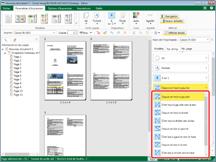 Si une option autre que [2 sur 1] a été sélectionnée pour la mise en page, il est possible de sélectionner les ordres suivants dans la liste déroulante.