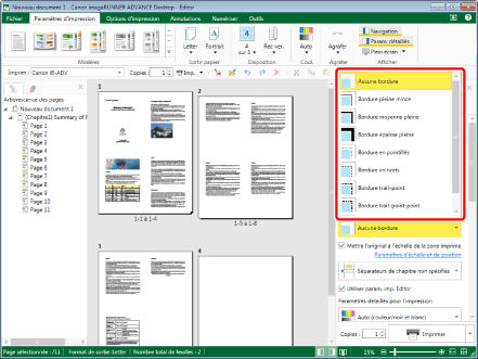 Si une autre option que [1 sur 1] a été sélectionnée pour la mise en page, il est possible de sélectionner la limite dans la liste déroulante.