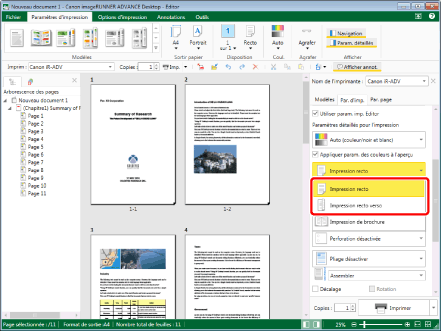 Quand le mode recto-verso est configuré pour le document en entier, il est possible de configurer l'impression en mode recto pour des chapitres spécifiques. Pour plus d'informations sur la configuration de l'impression en mode recto pour un chapitre, consulter la section suivante :