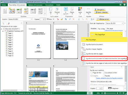 Pour ne pas utiliser d'agrafage, sélectionner [Pas d'agrafage] dans l'onglet [Par. d'imp.] de la Fenêtre Détails, la commande du ruban ou le bouton d'outil.