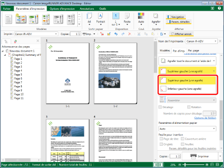 Cette fonction ne peut être utilisée que lors de la sélection d'une imprimante Canon lorsque la case [Utiliser param. imp. Editor] est cochée dans l'onglet [Par. d'imp.] de la Fenêtre Détails, de la commande du ruban ou du bouton d'outil.
