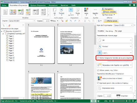 Les paramètres d'agrandissement/réduction sont pris en compte dans l'ordre suivant : page > chapitre > document.