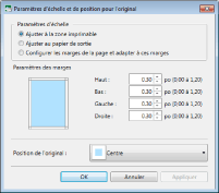 Configurez ce paramètre si l'option [Ajuster à la zone imprimable] ou [Configurer les marges de la page et adapter à ces marges] est sélectionnée dans [Paramètres d'échelle].