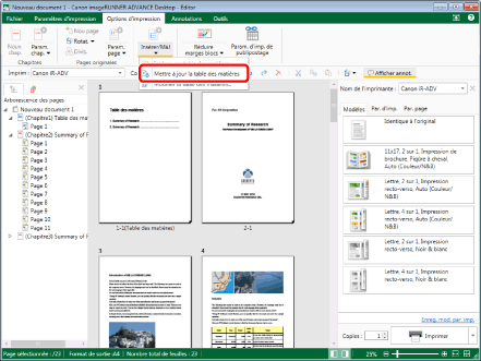 Si vous réduisez le nombre de pages lors de la mise à jour de la table des matières, les champs de Publipostage et les annotations spécifiés sur la page concernée sont également supprimés.