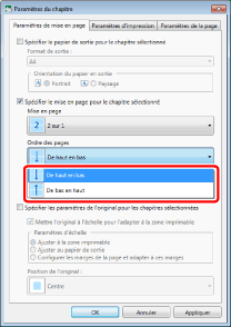 Lorsqu'une mise en page autre que [2 sur 1] est sélectionnée dans [Mise en page], les options suivantes relatives à l'ordre des pages peuvent être sélectionnées :