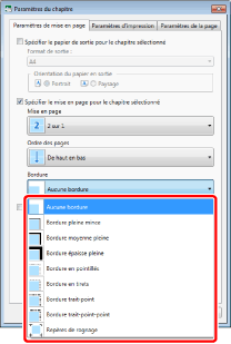 Pour plus d'informations sur l'annulation des paramètres définis chapitre par chapitre, veuillez consulter :