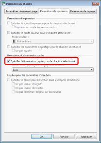 Les paramètres d'alimentation papier du chapitre spécifié peuvent être configurés indépendamment de ceux du document complet.