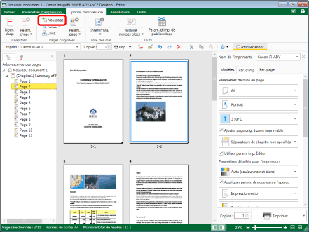 Si un chapitre a été sélectionné comme emplacement d'insertion de la nouvelle page, celle-ci est ajoutée en tant que première page du chapitre, avec le même format et la même orientation que la première page du chapitre sélectionné. Si le chapitre sélectionné ne comporte aucune page, une nouvelle page est ajoutée, avec le même format et la même orientation que ceux définis par les paramètres de format et d'orientation de sortie pour le chapitre sélectionné.