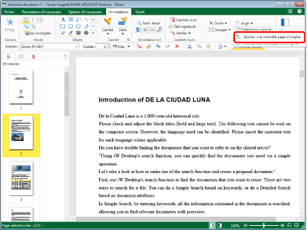 Cette opération peut également être effectuée à l'aide des boutons d'outils. Si les boutons d'outils ne sont pas affichés dans la barre d'outils de Desktop Editor, consultez la section suivante pour les afficher.