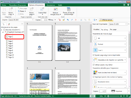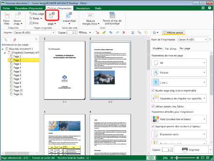 Cette fonction ne peut être utilisée que lors de la sélection d'une imprimante Canon lorsque la case [Utiliser param. imp. Editor] est cochée dans l'onglet [Par. d'imp.] de la Fenêtre Détails, de la commande du ruban ou du bouton d'outil.