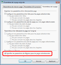 Cliquez sur [Appliquer] pour accéder à l'aperçu du document dans la Fenêtre de travail sans fermer la fenêtre [Paramètres de la page originale].