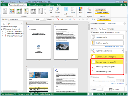 Pour plus d'informations sur l'agrafage d'ensembles d'une même page, consulter la rubrique suivante :