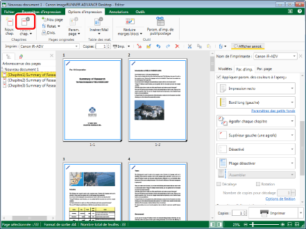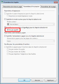 Cliquez sur [Appliquer] pour accéder à l'aperçu du document dans la Fenêtre de travail sans fermer la fenêtre [Paramètres du chapitre].