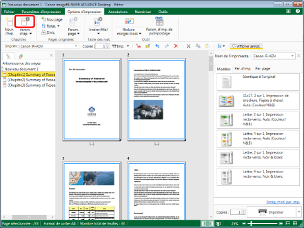 Cliquez sur [Appliquer] pour accéder à l'aperçu du document dans la Fenêtre de travail sans fermer la fenêtre [Paramètres du chapitre].