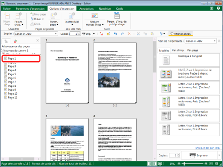 Pour annuler le taux d'agrandissement/de réduction, cliquez avec le bouton droit de la souris sur la page dont vous voulez annuler les paramètres sous l'onglet [Arborescence des pages] de la fenêtre de navigation, et sélectionnez [Ne pas mettre à l'échelle les originaux des pages sélectionnées].