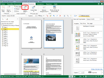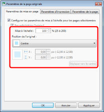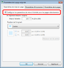 Cliquez sur [Appliquer] pour accéder à l'aperçu du document dans la Fenêtre de travail sans fermer la fenêtre [Paramètres de la page originale].
