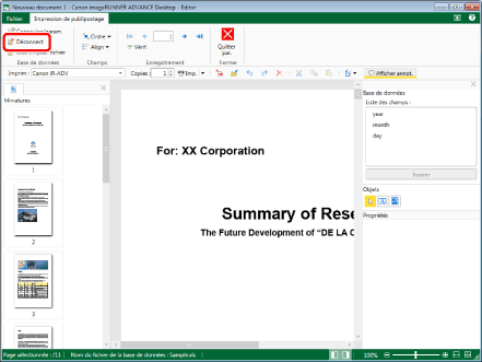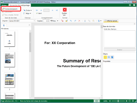 Lorsque la connexion à la base de données est déconnectée, il n'est plus possible d'afficher l'aperçu des champs insérés. La reconnexion à la base de données permet de l'afficher de nouveau.