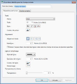 Lorsque vous sélectionnez cette option, l'option [Paramètres détaillés pour les champs de texte] s'affiche. Vous pouvez modifier les détails du champ de texte dans l'option [Paramètres détaillés pour les champs de texte]. Pour plus d'informations, consultez la section suivante.