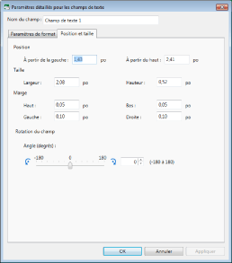 La position du curseur indique l'angle du champ de texte. Pour modifier l'angle, déplacer le curseur vers la gauche ou la droite, ou saisir une valeur numérique. Il est également possible d'utiliser le sélecteur