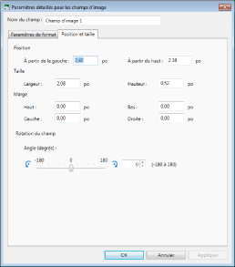 La position du curseur indique l'angle du champ d'image. Pour modifier l'angle, déplacer le curseur vers la gauche ou la droite, ou saisir une valeur numérique. Il est également possible d'utiliser le sélecteur