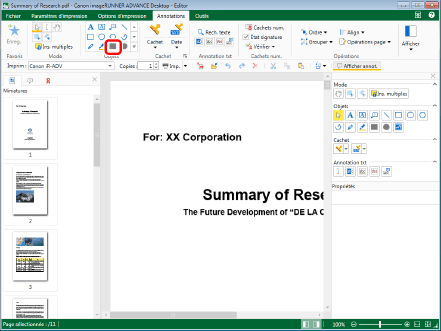 Cette opération peut également être effectuée à l'aide des boutons d'outils. Si les boutons d'outils ne sont pas affichés dans la barre d'outils de Desktop Editor, consultez la section suivante pour les afficher.