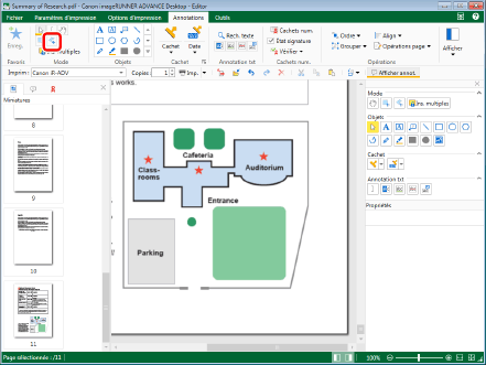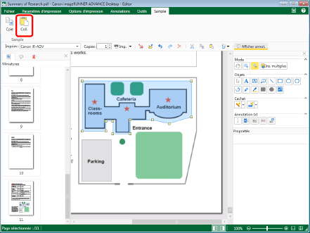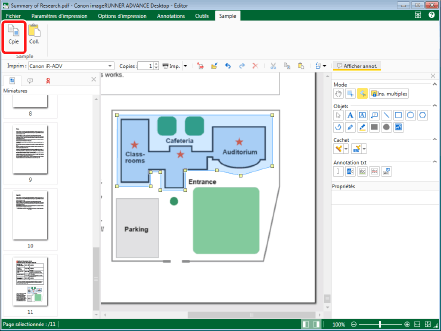 Cette opération peut également être effectuée à l'aide des boutons d'outils. Si les boutons d'outils ne sont pas affichés dans la barre d'outils de Desktop Editor, consultez la section suivante pour les afficher.
