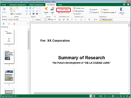 L'onglet [Miniatures] s'affiche par défaut dans la Fenêtre de navigation du Mode Annotations.