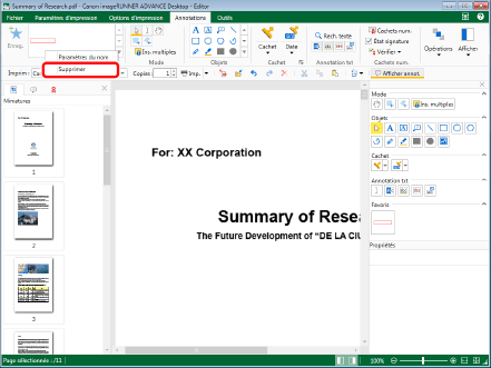 Ou, dans la liste des favoris de la Fenêtre Détails, cliquer avec le bouton droit sur le cachet favori à supprimer, puis sélectionner [Supprimer].