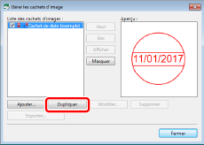 Vous ne pouvez pas modifier les cachets prédéfinis qui ont été enregistrés automatiquement lors de l'installation. En revanche, vous pouvez modifier les cachets obtenus par duplication de ces cachets.