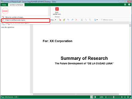 Les informations du certificat autosigné créé dans Desktop Editor peuvent être consultées à l'aide de la méthode indiquée ci-dessous.