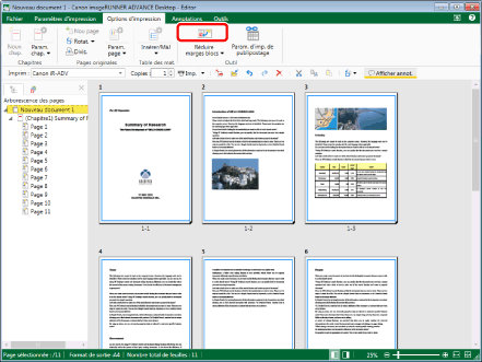 En cas de réduction des marges d'un document contenant 100 pages ou plus, seules les marges des 100 premières pages sont réduites.