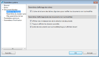 Cochez cette case pour afficher la [Liste des documents non lus/modifiés] lorsqu'il existe des documents non lus/mis à jour.