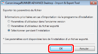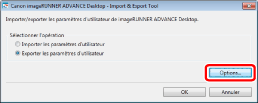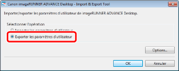 Pour Windows 10, sélectionnez le menu [Démarrer] > [Canon imageRUNNER ADVANCE Desktop] > [imageRUNNER ADVANCE Desktop Import & Export Tool].