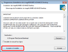 Si l'Assistant Installation de imageRUNNER ADVANCE Desktop ne démarre pas ou que le support d'installation n'a pas été fourni sur disque, double-cliquez sur le fichier suivant selon votre système d'exploitation.