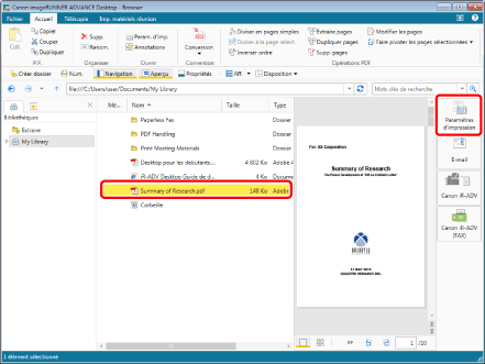 Dans Desktop Browser, sélectionnez les documents à convertir en document IWB, puis cliquez sur [Paramètres d'impression].