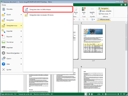 Sélectionnez le menu [Fichier] > [Enregistrer sous] > [Enregistrer dans la bibliothèque].