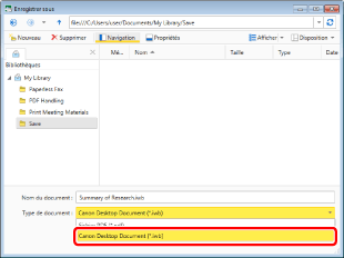 Sélectionnez [Type de document] > [Canon Desktop Document (*.iwb)].