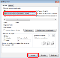 Sélectionnez [Canon Desktop Document Writer] comme imprimante à utiliser, puis cliquez sur [Imprimer].