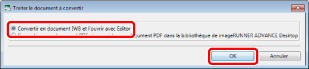 Sélectionnez [Convertir en document IWB et l'ouvrir avec Editor] et cliquez sur [OK].