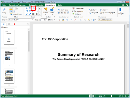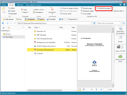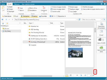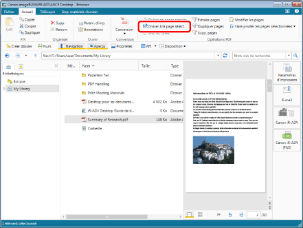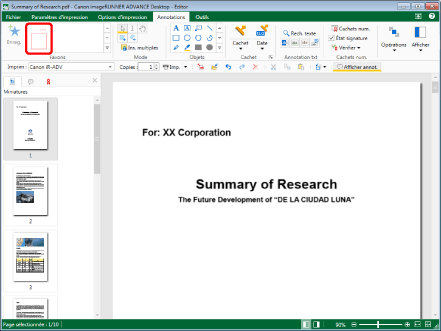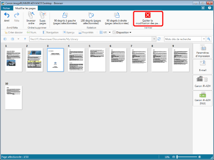 Vous pouvez également faire pivoter la page et enregistrer le document en cliquant sur [Faire pivoter les pages sélectionnées de 90 degrés à gauche et enregistrer] ou sur [Faire pivoter les pages sélectionnées de 90 degrés à droite et enregistrer] dans la Fenêtre d'aperçu.
